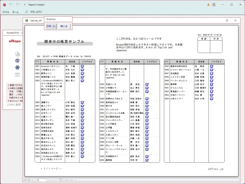 テスト用の帳票イメージを添付しています。