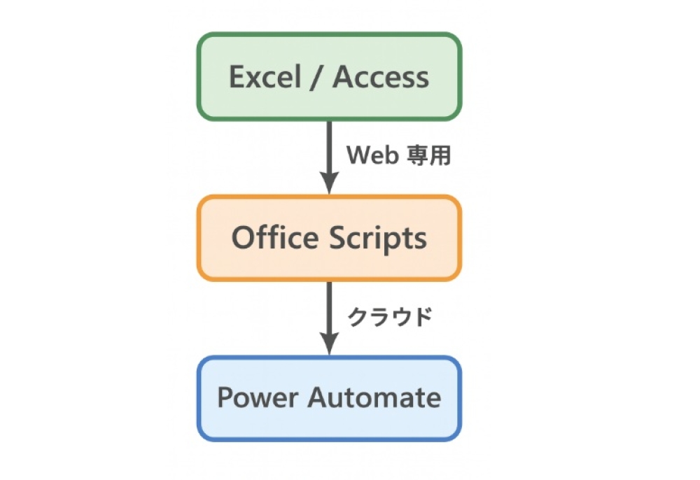 ・Office Scripts⇒・Excel Online 専用、TypeScriptベース、・非エンジニアには学習コストが高い